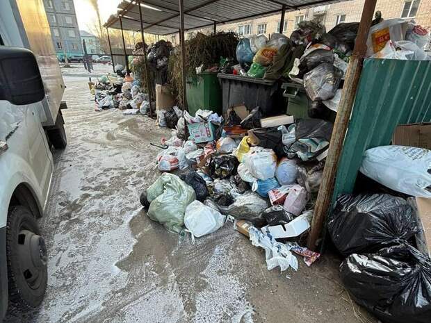 Собеседник редакции рассказал, что контейнерная площадка буквально утопает в бытовых отходах.