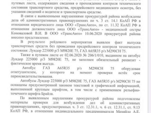 Кроме этого в одном из транспортных средств находился огнетушитель с истекшим сроком переосвидетельствования, а также два маршрутных такси не были оснащены текстовой информацией с надлежащим шрифтом Брайля.